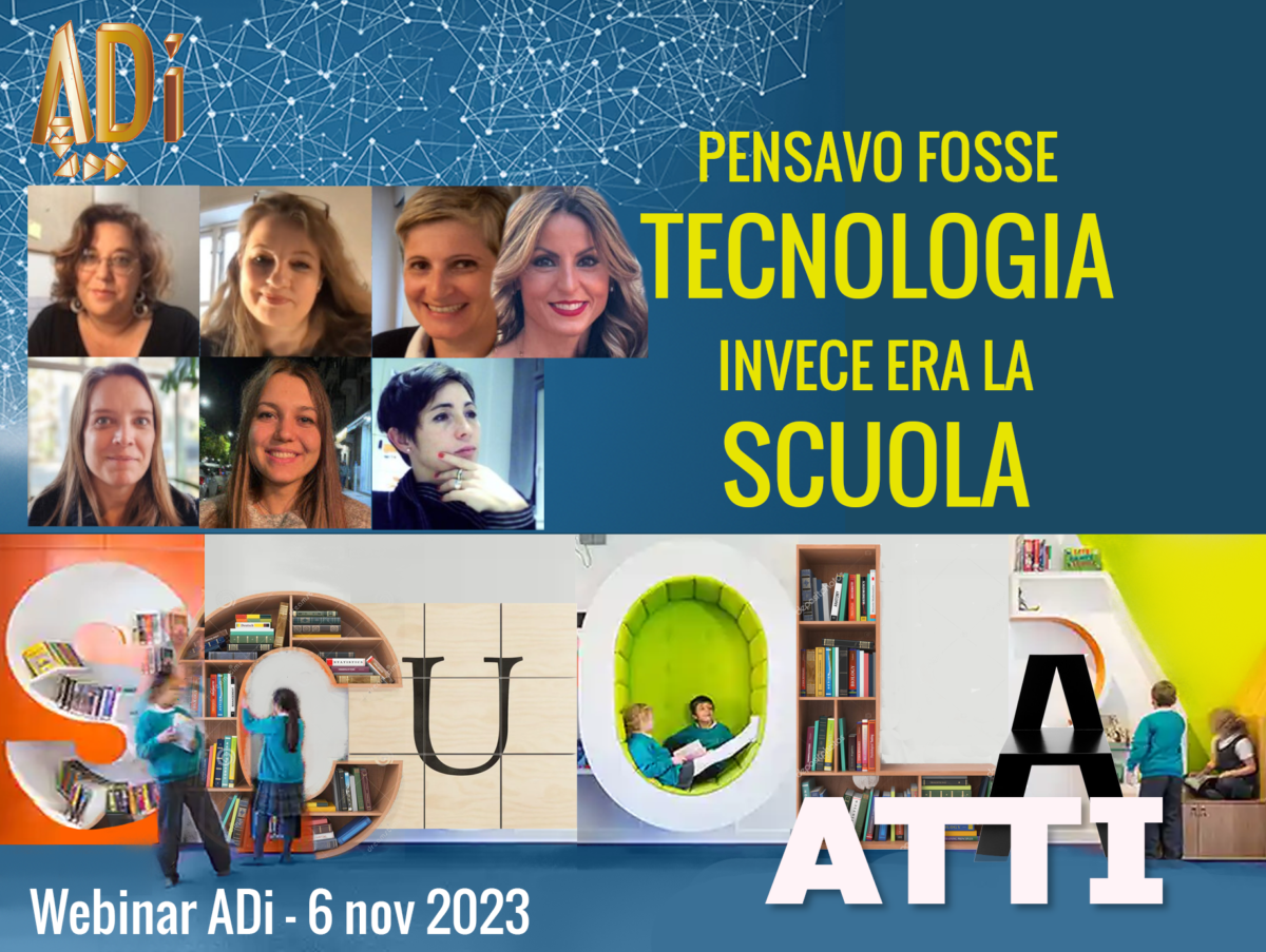 Sono pubblicati i video del webinar di novembre scorso in cui abbiamo ascoltato: Mariana Ferrarelli in Pratiche innovative di insegnamento con le tecnologie; Lene Jensbi Lange nell'intervista a due isegnanti su Tecnologie e ambienti di apprendimento: un’esperienza danese; Silvia Mazzoni in Un’autobiografia dell’innovazione. Dieci anni in cammino verso la scuola che vorrei e Paola Moretti in Crescere tutti, crescere insieme; Susanna Puecher in Formarsi a una professionalità complessa: la mia esperienza di studio; Juliana E. Raffaghelli in Sulla leggerezza della nuvola: educare per una trasformazione digitale sostenibile; e Roberta Silva in Per una innovazione didattica situata: alla ricerca di un circolo virtuoso al servizio dell’apprendimento.