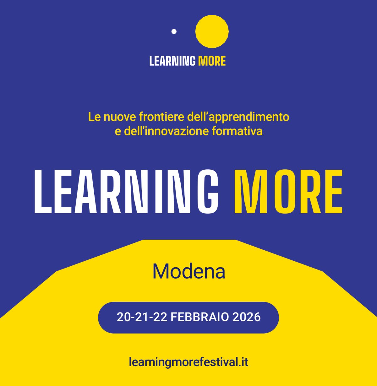 Diamo comunicazione del consueto Festival dell’apprendimento e della formazione, il Learning More, che si terrà a Modena, dal 20 al 22 febbraio.