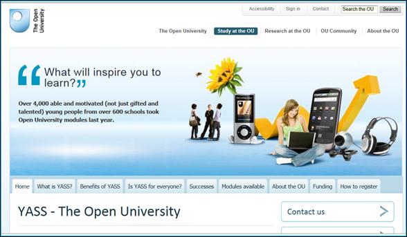 YASS sta per Young Applicants in Schools Scheme. Si tratta di corsi della Open University a cui possono iscriversi giovani studenti bravi e motivati di età compresa fra i 16 e i 18 anni, prima cioè che abbiano l'età per accedere all'Università.