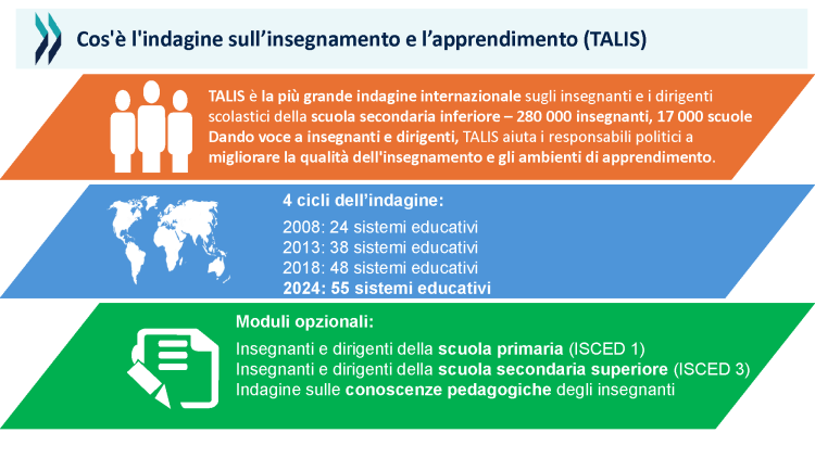 Scopo principale dell’indagine TALIS – la più ampia su questo tema – è raccogliere informazioni utili sul vissuto e le percezioni degli insegnanti, per sostenere i Paesi partecipanti nello sviluppo delle loro politiche sull’insegnamento e sull’apprendimento.