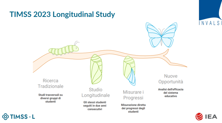 L’indagine internazionale TIMSS valuta il rendimento in matematica e scienze degli studenti di grado 4 e grado 8 e fornisce dati contestuali per il miglioramento dei sistemi educativi. L’ultima indagine è del 2023, ma nel 2024 per la prima volta nove paesi (Italia, Slovenia, Corea del Sud, Svezia, Georgia, Montenegro, Rep. del Kosovo, Macedonia del Nord, Giordania) hanno partecipato a uno studio longitudinale seguendo gli studenti per due anni consecutivi: dal grado 4 al grado 5 e, in alcuni casi, anche grado 8 al 9. Nel 2024 si è dunque ripetuta la rilevazione, con la somministrazione sia delle prove di matematica e di scienze, sia dei questionari che raccolgono le variabili di contesto. L’Italia è tra i Paesi che hanno partecipato a TIMSS Longitudinal, seguendo gli studenti dal grado 4 al grado 5 della scuola primaria (mentre l’indagine non è stata ripetuta al grado 9, per le evidenti difficoltà dovute al cambio di scuola alla fine del grado 8).