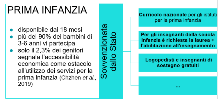In cosa spendiamo i soldi? La pre-primaria e la primaria ricevono più soldi della media OCSE. La secondaria riceve meno. Consideriamo l’infanzia davvero importante. Quindi stiamo investendo molto nella pre-primaria. Gli insegnanti devono avere una laurea per lavorare nella scuola dell’infanzia. Abbiamo logopedisti e insegnanti di sostegno per l’educazione speciale.