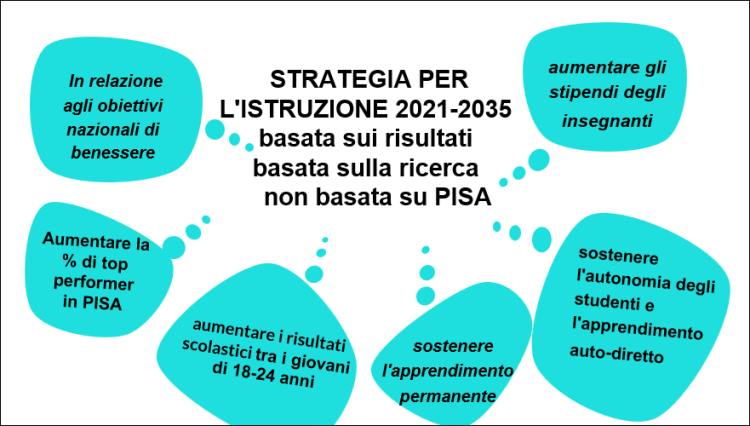 Avete visto all’inizio il “salto della tigre”. Stiamo facendo un salto della tigre verso l’IA, per l’intera nazione, già dal prossimo anno accademico. Le strategie sono basate sui risultati, sulla ricerca. Non sono guidate da PISA. Sono legate agli obiettivi nazionali di benessere. Aumentare gli stipendi degli insegnanti è uno degli obiettivi chiave. Due anni fa, li abbiamo aumentati del 24%. Non so dove troveremo i soldi, ma c’è l’impegno a continuare a farlo. L’autonomia dello studente, l’apprendimento autodiretto è un altro obiettivo chiave. Tutti questi obiettivi hanno piani di lavoro annuali. Non è una fantasia. Vogliamo sostenere l’apprendimento permanente così da non trovarci nelle situazioni di cui parlava Andreas. Vogliamo aumentare il livello di istruzione dei 18-24enni e la percentuale dei top performer, che significa ridurre il numero dei low performer.